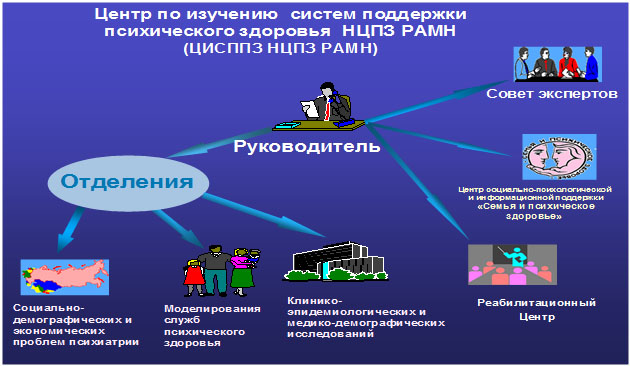 - разработка концептуальных основ и научно-методических принципов построения современных организационных систем и моделей служб психического здоровья на основе системного подхода;
