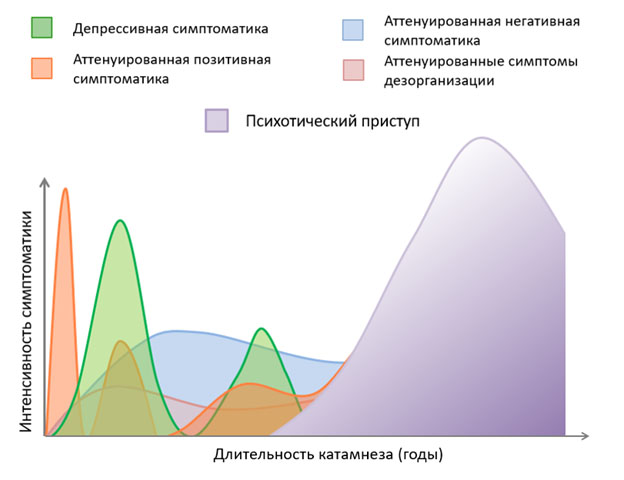 Ослабленные (аттенуированные) симптомы шизофрении, представленные психопатологическими феноменами из спектра позитивных, негативных симптомов и симптомов дезорганизации [Patel K. et al., 2014; Newton R. et al., 2018; Rathnaiah., 2020] со степенью выраженности, достаточной для клинического распознавания, но неудовлетворяющей критериям, позволяющим верифицировать текущий шизофренический процесс, могут выявляться на инициальных этапах эндогенного процесса задолго до развития очерченной клинической картины заболевания [Скугаревская М.М. с соавт., 2015; Коцюбинский А.П. с соавт., 2017; Armando M. et al., 2015; Fusar-Poli P. et al., 2017] и служить ранними маркерами шизофрении [Смулевич А.Б. с соавт., 2020; Fusar-Poli et al., 2017; Correll C. et al., 2020].