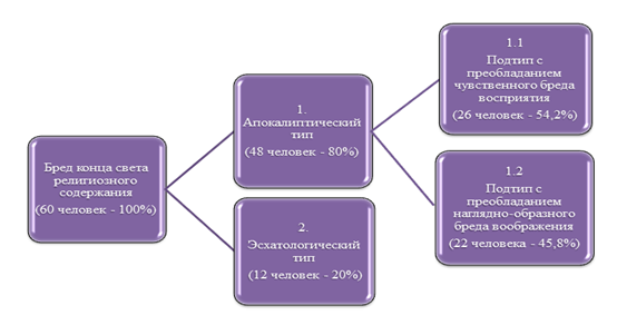 Рисунок 1. Типология бреда конца света религиозного содержания при шизофрении.