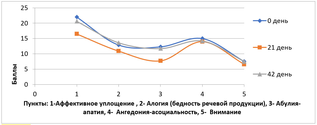 Изначально при данной разновидности резистентных состояний негативная симптоматика носила персистирующий характер и была представлена преимущественно нарушениями эмоционально-волевого спектра. Влияние рТМС на клинические проявления негативных расстройств было наиболее заметным в сфере мотивации.