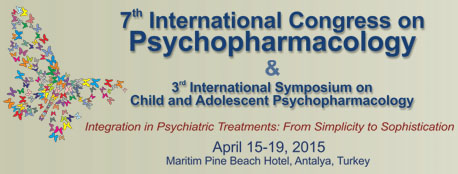 Turkish association for psychopharmacology`s 7th International Congress on Psychopharmacology & 3rd International Symposium on Child and Adolescent Psychopharmacology (7th ICP - 3rd ISCAP) will be held on April 15-19, 2015 in Antalya, Turkey.