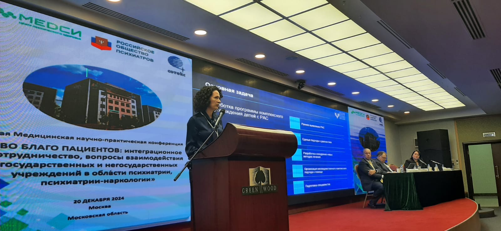 Исполняющая обязанности генерального директора Научного центра психического здоровья Минобрнауки России Юлия Чайка выступила с докладом «Инновации и научно-практические задачи организации помощи лицам с расстройствами аутистического спектра».